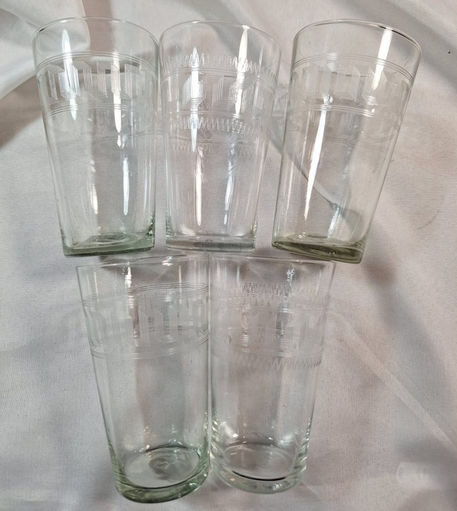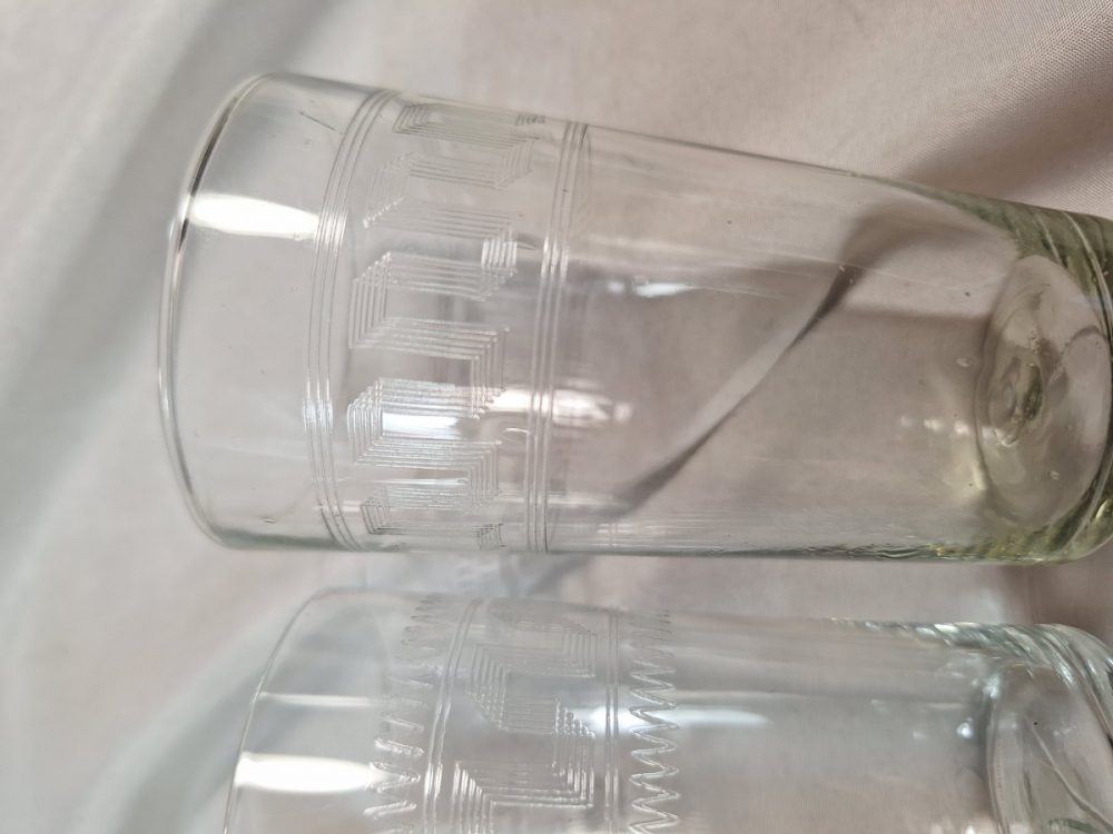 Categorieën: Antiek, Curiosa, Glas, Glas antiek 5 geslepen glaasjes – meander€15.00 Hoog 9.5 cm. 5 glaasjes met meander motiefje. niet allemaal hetzelfde kast 1 op voorraad In winkelmand Related Products Antiek opaline beschilderd vaasje €17.50 Lepelvaasje – Fries draadjesglas €10.00 5 Likeur of borrelglaasjes midden 19e eeuw €17.50 Kronthal Waters – luciferhouder – glas – ca 1900 €35.00