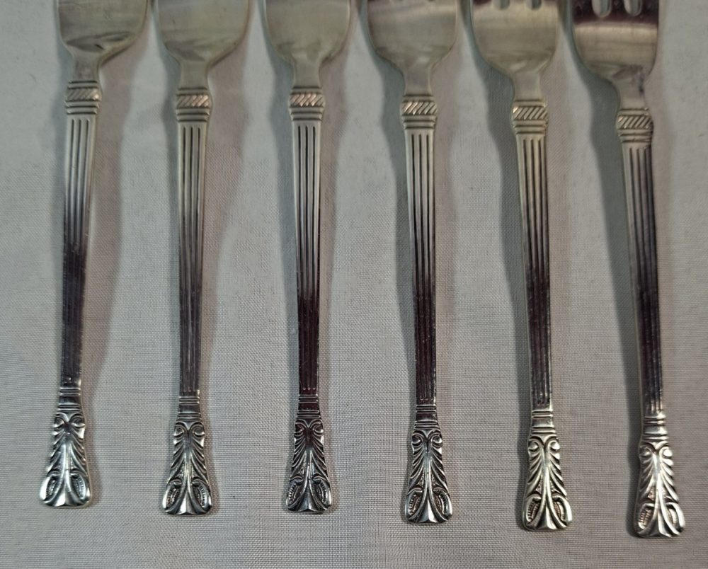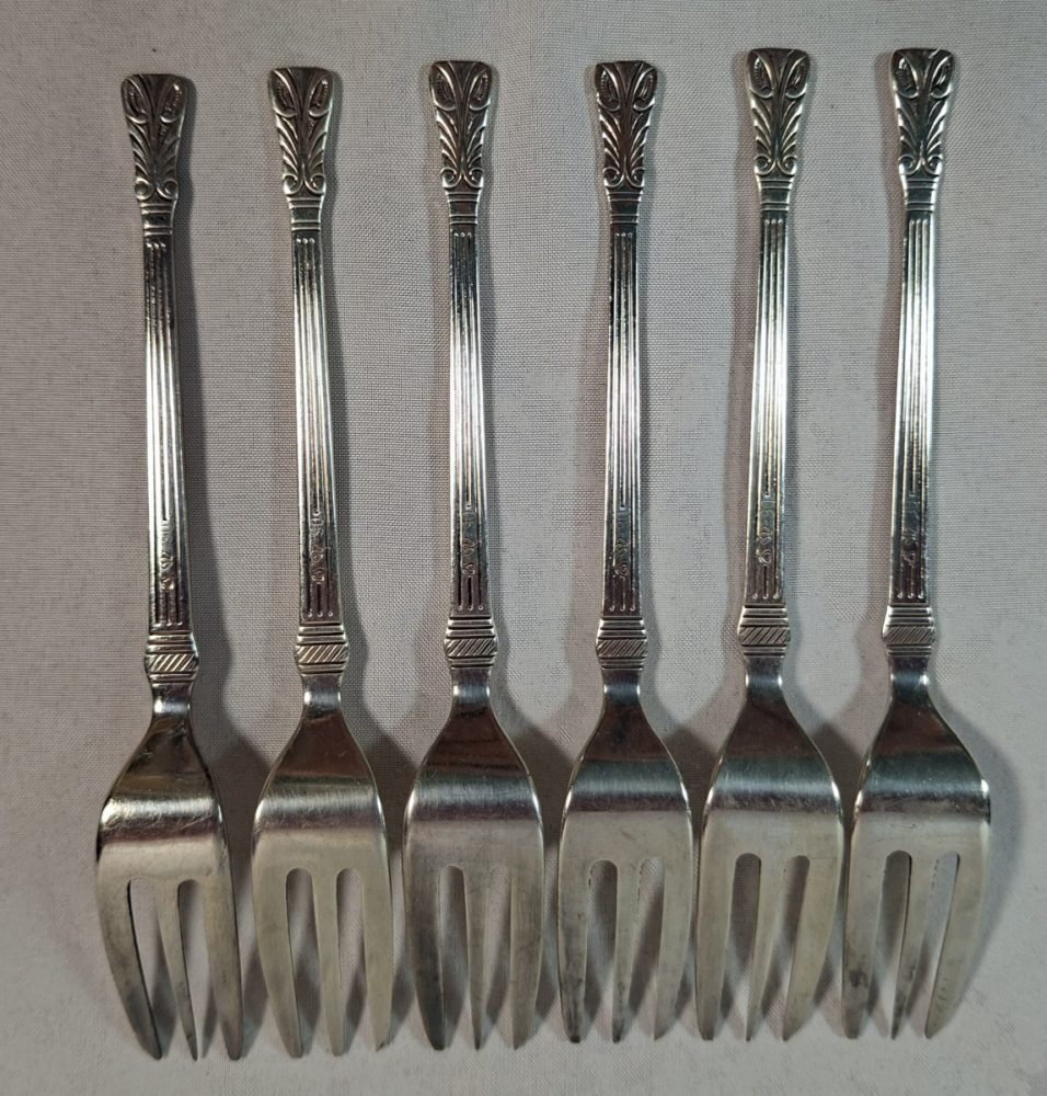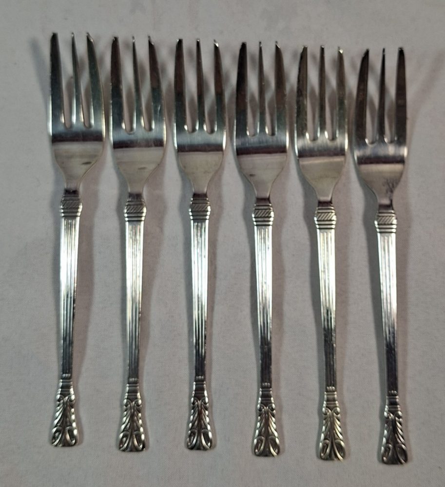 Categorieën: Bestek, Curiosa, Goud zilver en verzilverd 6 verzilverde gebaksvorkjes met art deco motief€15.00 6 verzilverde gebaksvorkjes met art deco motief. Lengte 12.5 cm, in goede staat. Doosje 1 op voorraad In winkelmand Related Products Cote D`OR – blik in de vorm van tas* €25.00 Sale! 1980 * De Porceleyne Fles – Bord Juliana €50.00 €35.00 Vintage jaren 50 Sirram mint groene toilet garnituren kistje* €25.00 Pendant set legering beelden – Pecheur (visser) – ca 1900* €45.00