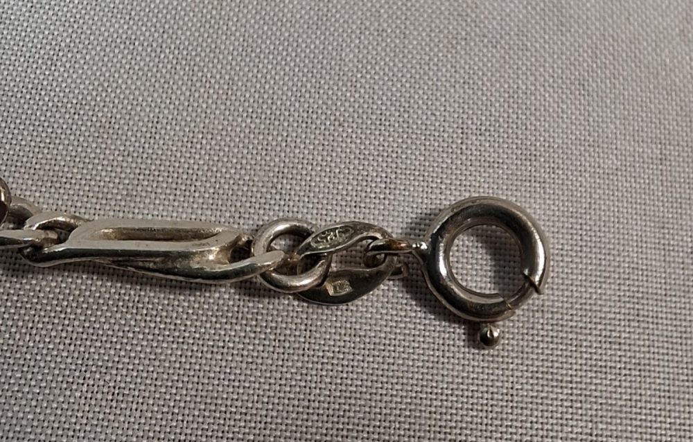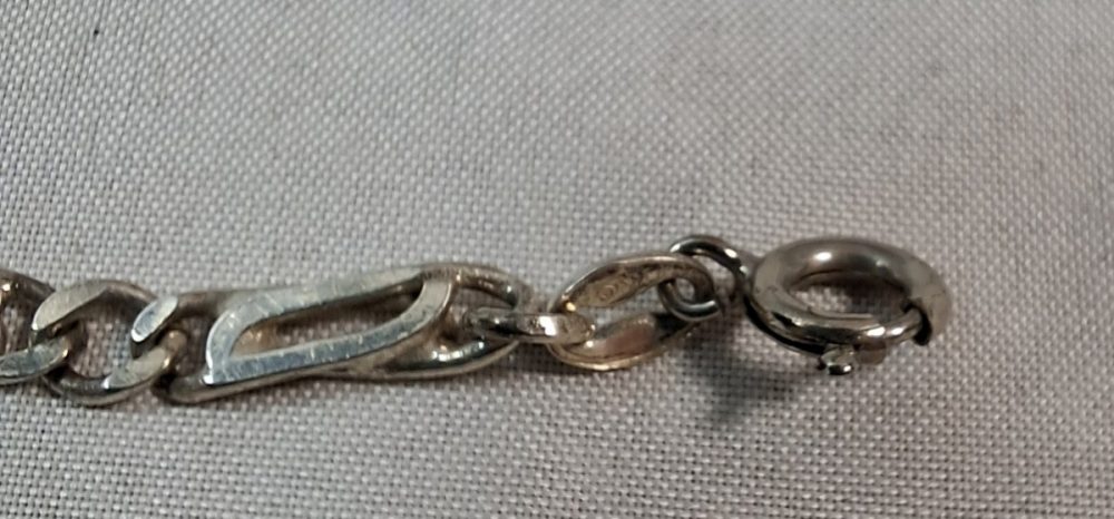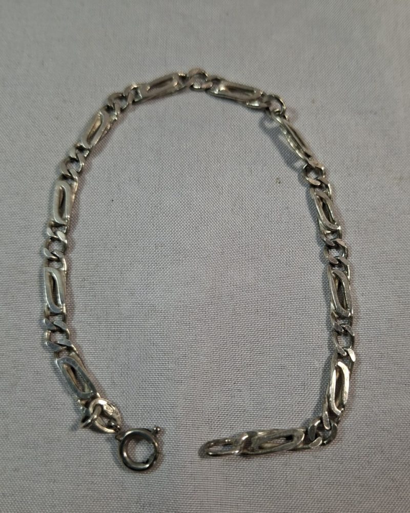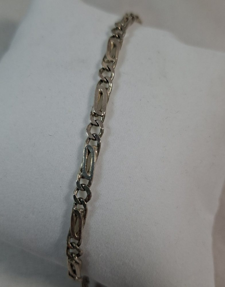 Categorie: sieraden 925 zilveren schakelarmband€15.00 Mooie zilveren platte schakelarmband. Lengte 19.5 cm. Gekeurd 925 Z1 en meesterteken. Gedragen maar nog in goede staat. 1 op voorraad In winkelmand Related Products Sale! Vintage verguld zilveren machetknopen €35.00 €25.00 Sterling zilveren hanger/broche €25.00 Ketting met bloemen en turkoois €25.00 925 zilveren Casa oorstekers €15.00