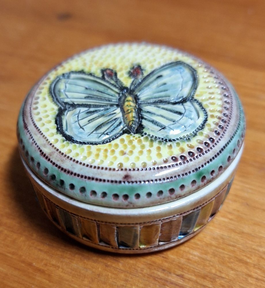 Categorieën: kistjes en doosjes, volksaardewerk, Aardewerk en porselein, Curiosa, Makkum, Nederlands keramiek, Vintage Fries kerfsnede aardewerken doosje met vlinder€12.50 Diameter 6 cmen hoog 3 cm. Gemerkt K. igst kast 1 op voorraad In winkelmand Related Products Societe ceramique Maastricht – bord 1953 €15.00 Sale! 1937 – Bord De Porceleyne Fles – Juliana/Bernhard €35.00 €27.50 Boerenbont societe ceramique 417 melkkannetje €10.00 3 kleine Delftse plaquettes koninklijk huis – 1948 €18.00