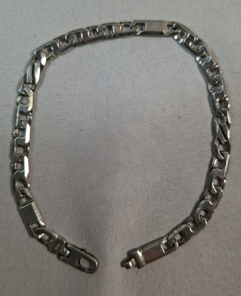 Categorie: sieraden Italiaans zilveren gourmet schakelarmband€15.00 Italiaans zilveren gourmet schakelarmband. Lengte 21 cm. Gekeurd met zwaardje 925 en Italy. Gedragen maar nog in goede staat. 1 op voorraad In winkelmand Related Products Sale! Otazu ketting met blokjes en Swarovski kristal €35.00 €25.00 Stoere stainless steel armband met grove schakel €17.50 925 zilveren ring met bijpassende oorhangers €35.00 Zilver en been hanger met edelweiss €15.00
