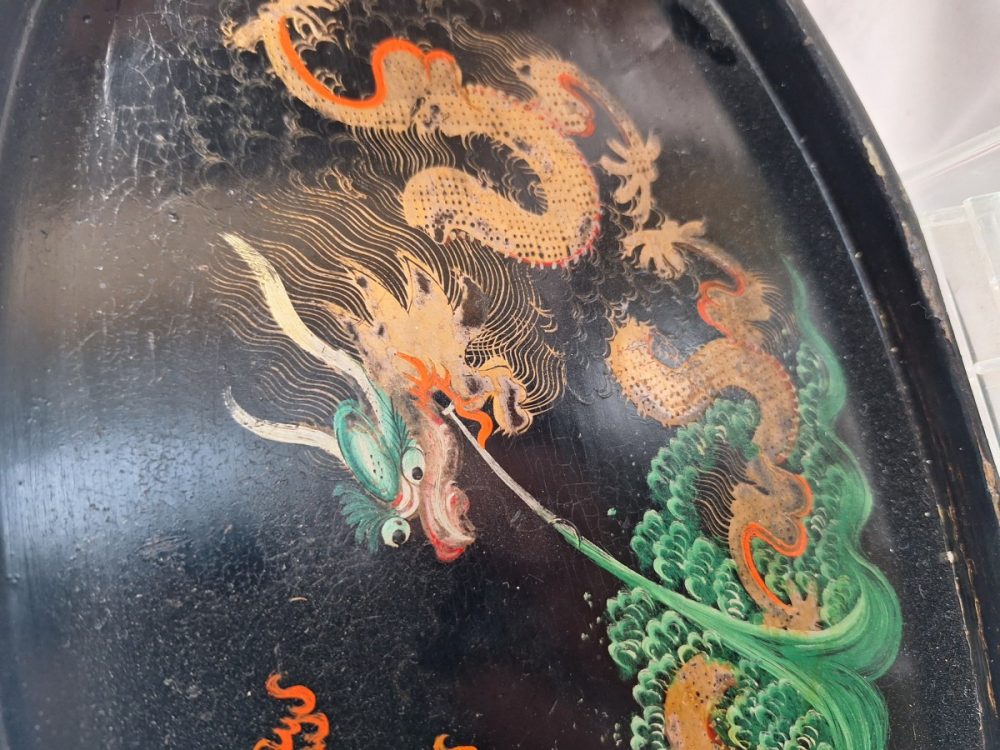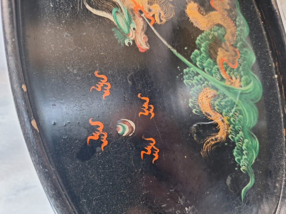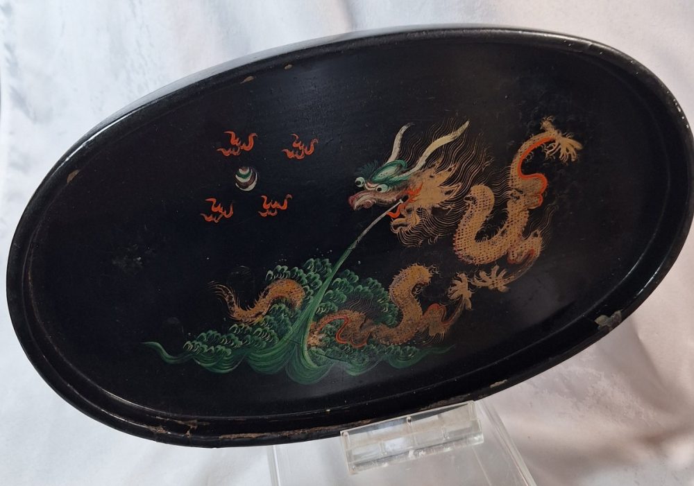 Categorieën: Antiek, Aziatica, Curiosa, Kunst en design lakwerk dienblaadje papiermache met draak€15.00 – lakwerk dienblaadje van papiermache met een draak die achter een parel aanjagend. Lengte 27.5 cm ds53 1 op voorraad In winkelmand Related Products Piazza – Shaker – ijsemmer – servethouder en kommen (12) €75.00 Murano blokvaas zeszijdig en twee kleurig – ca 1960* €35.00 Kavel houtsnijwerk – oosters €35.00 Sale! Kayserzinn coasters 6 stuks – ca 1900 – Jugendstill* €50.00 €35.00
