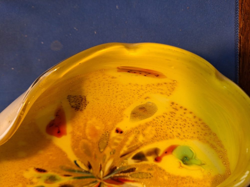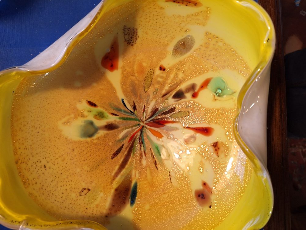 Categorieën: Curiosa, Glas, Kunst en design, Vintage murano kom€35.00 Mooie golvende kom in overwegend geel met diverse kleuren en goud op witte ondergrond. In goede staat ds15 1 op voorraad In winkelmand Related Products Marc Aurel – Nachtmann – Karaf met zilveren montuur “de steek van Napoleon” – kristal €50.00 Kosta Boda- kom met dansende paartjes €20.00 Fraaie geslepen glaasjes – kristal €15.00 Murano blokvaas zeszijdig en twee kleurig – ca 1960* €35.00