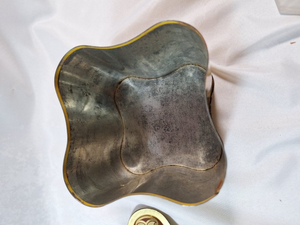 Categorieën: kistjes en doosjes, Curiosa, Vintage Oud blikje bloemen€9.50 Oud vierzijdig blikje met bloemen. Hoog 12 cm. In goede staat kast 1 op voorraad In winkelmand Related Products Vintage jaren 50 Sirram mint groene toilet garnituren kistje* €25.00 Sale! Kannetje met ijsglas design €22.00 €17.50 hengselbakje met glazen bakje – ca 1900* €13.00 Antiek Gietijzeren en koperen komfoor* €35.00