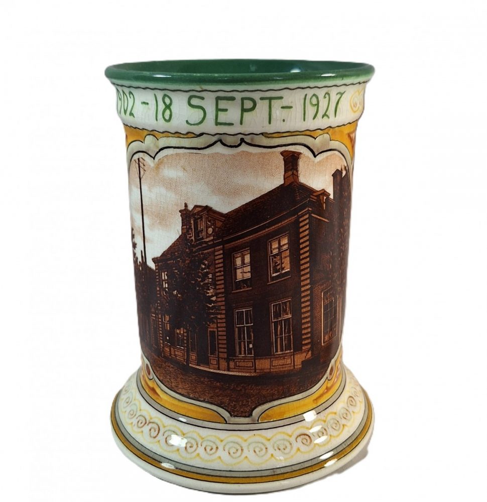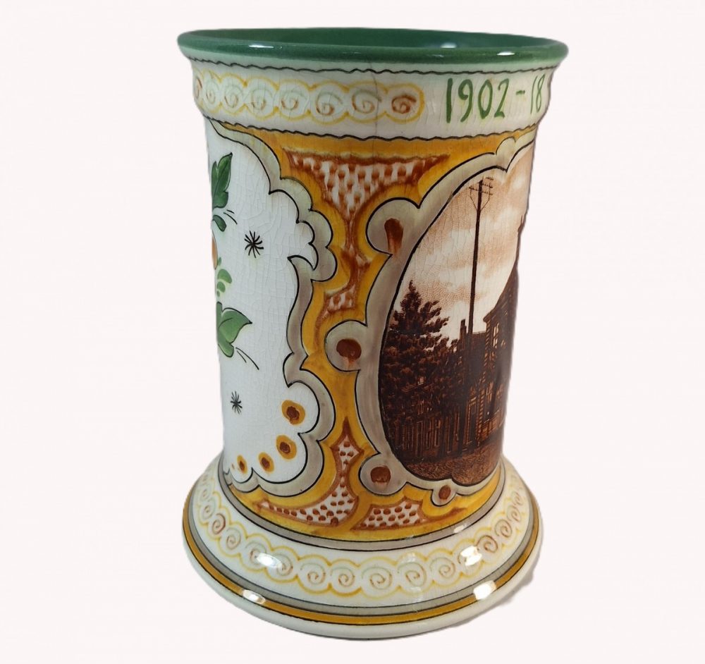 Categorieën: Aardewerk en porselein, Curiosa, Gouda, Jugendstil, Kunst en design, Nederlands keramiek Plateelbakkerij Zuid-Holland sigarenbeker 1927 art nouveau€27.50 Hoogte 14.5 cm. Plateelbakkerij Zuid-Holland. Herenhuis (of societeit?) met aanduiding 1902-18 sept 1927 in de art nouveau stijl. Heel klein chipje en haarlijntje (slecht tezien) kast 1 op voorraad In winkelmand Related Products Pieter Groeneveldt – Vaas €22.00 Mobach jardiniere – ca. 1910* €50.00 Petrus Regout – Bordje ca 1870 – Nemrod €15.00 MOSA Maastricht -ronde plaquette 1945 €25.00