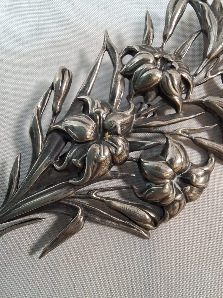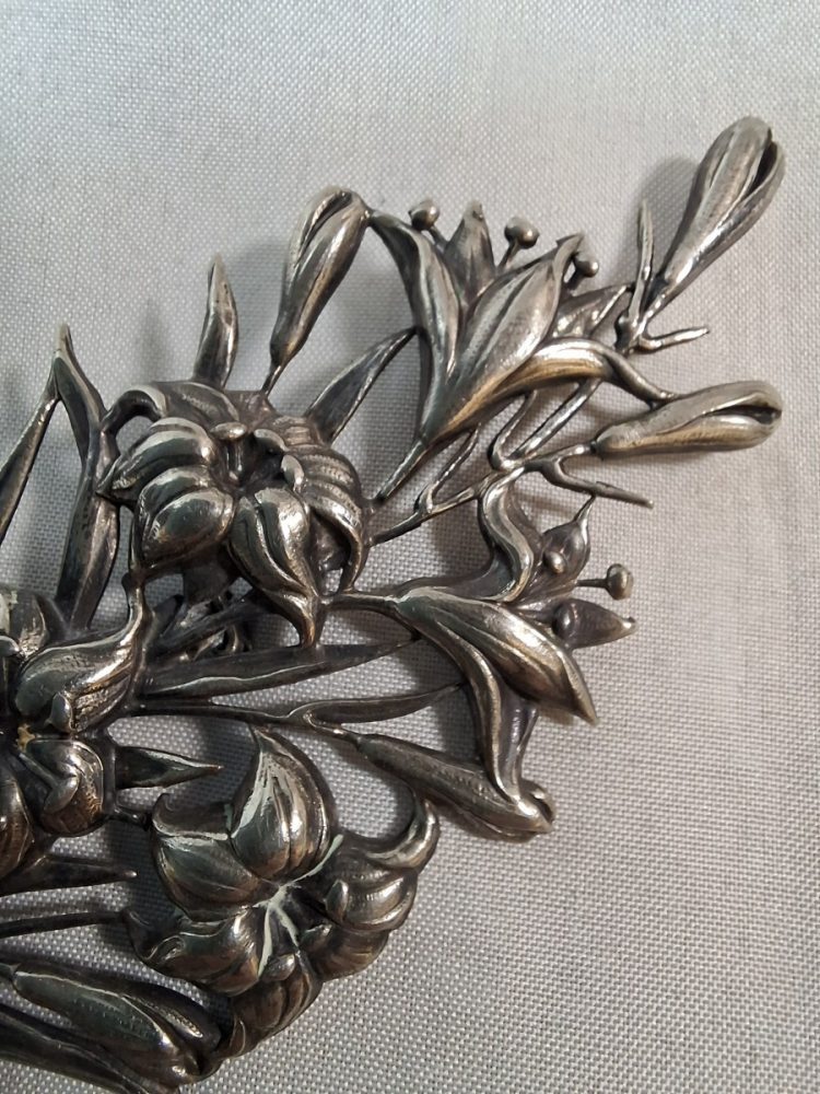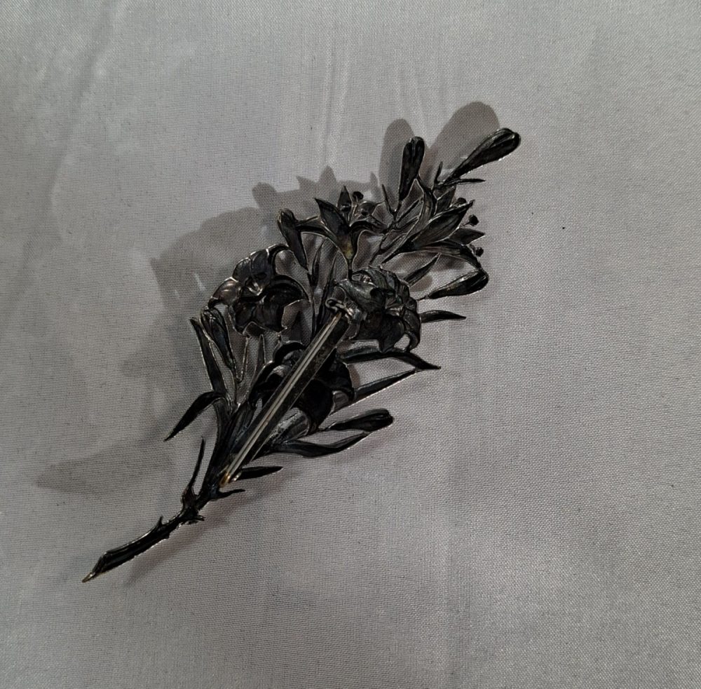 Categorie: sieraden Royale florale takbroche€19.50 Blikvanger op ieder kledingstuk deze broche met bloemen. Geen zilverkeur kunnen ontdekken. 11 cm lang, 4.5 cm breed. In goede staat. 1 op voorraad In winkelmand Related Products Geëmailleerde cloisonne ring €10.00 Stoere stainless steel armband met grove schakel €17.50 Sale! Maria Calderara Ketting €50.00 €40.00 Zilver en been hanger met edelweiss €15.00