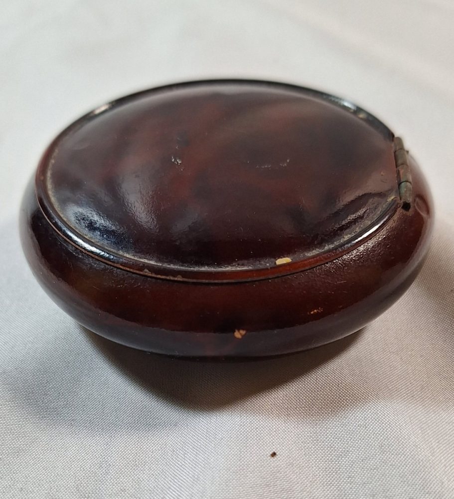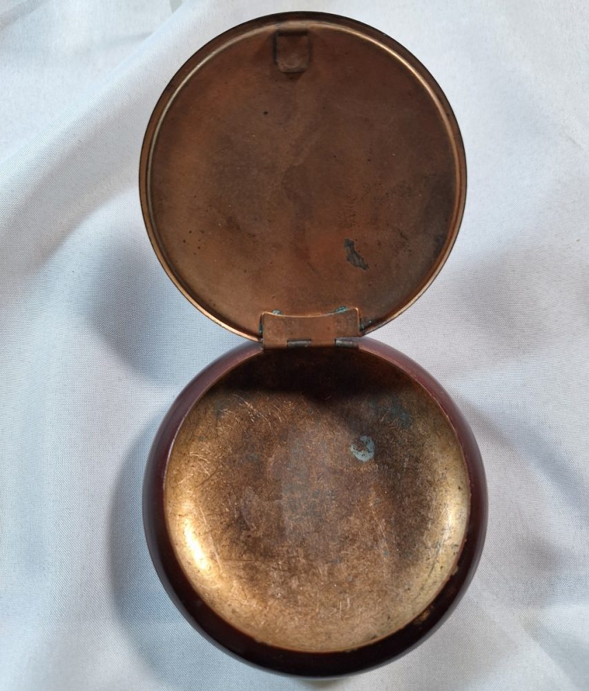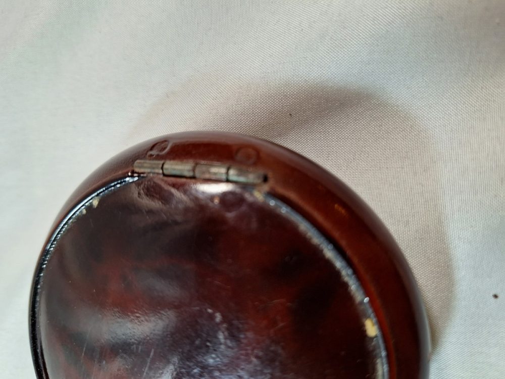 Categorieën: kistjes en doosjes, Antiek, Curiosa snuiftabak doos ca 1900€22.50 Fraaie ronde en platte snuiftabak doos met gepolitoerde oppervlak en vuurvergulde binnenkant tegen het inwerken van de zuren van snuiftabak. Openen door lichte indrukking zijkanten! In gebruikte maar goede staat, zie foto`s ds15 1 op voorraad In winkelmand Related Products Grote Delftse albarello apothekerspot – s`Gravenzande* €40.00 Sale! Kannetje met ijsglas design €22.00 €17.50 Antiek Gietijzeren en koperen komfoor* €35.00 Vintage jaren 50 Sirram mint groene toilet garnituren kistje* €25.00