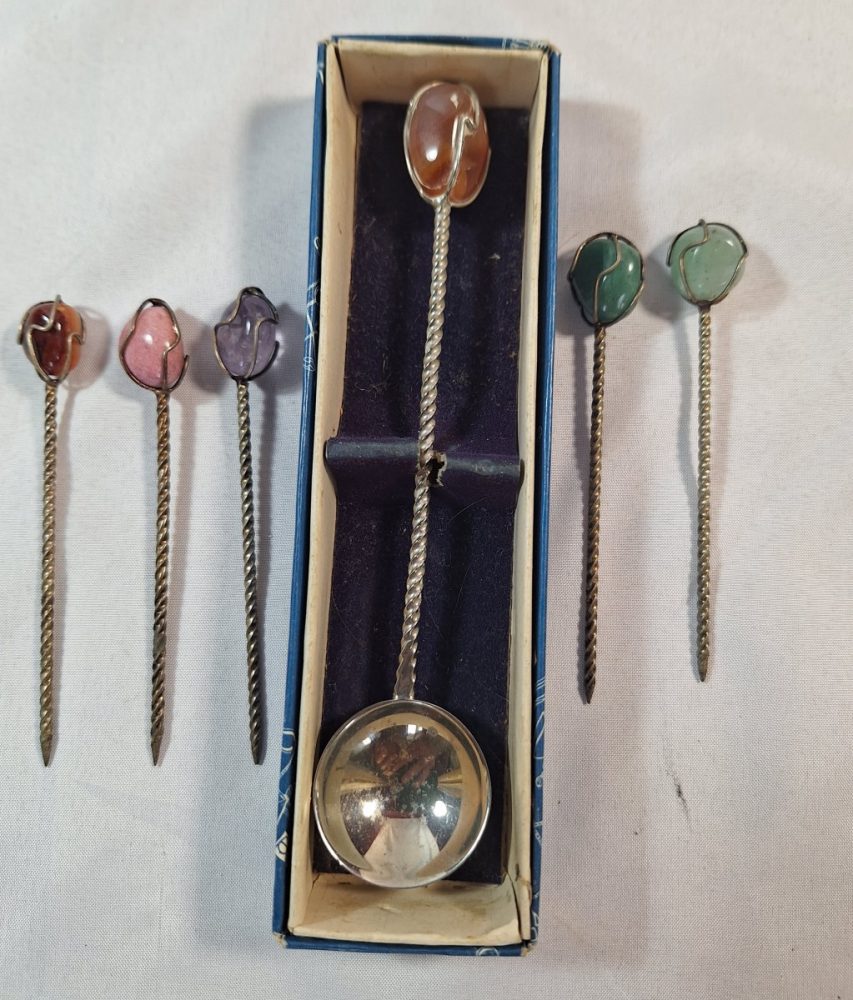 Categorieën: Bestek, Curiosa, Serviesonderdelen, Vintage Sylmar prikkers en lepel met mineraalsteen€15.00 lengte lepel 14.5 cm en prikkers 8.5 cm. in doos. ds53 1 op voorraad In winkelmand Related Products 2 brocante bordjes met romantisch tafereel €10.00 Vintage jaren 50 Sirram mint groene toilet garnituren kistje* €25.00 Sale! Kannetje met ijsglas design €22.00 €17.50 Societe ceramique – bord decor Landschap* €4.00