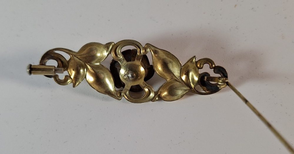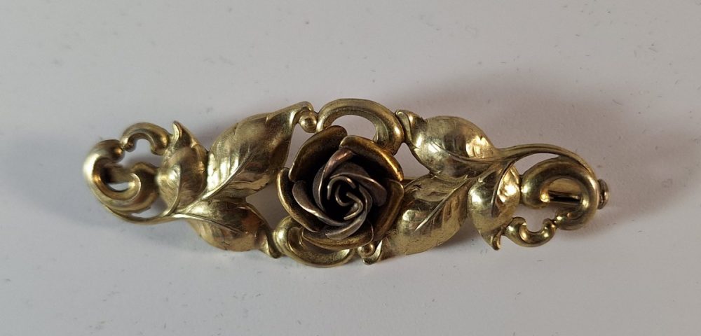 Categorie: sieraden Vergulde broche met roos€15.00 Sierlijke vergulde broche met in het midden een roos. 5.5 cm lang, met oude sluiting. In goede staat. 1 op voorraad In winkelmand Related Products Sale! Vintage verguld zilveren machetknopen €35.00 €25.00 Vintage celluloid bloemen armband ca 1930 €22.00 Aparte armband met grote geslepen agaat – onbekend gemerkt €45.00 835 zilveren ronde hanger met een galjoen €29.50