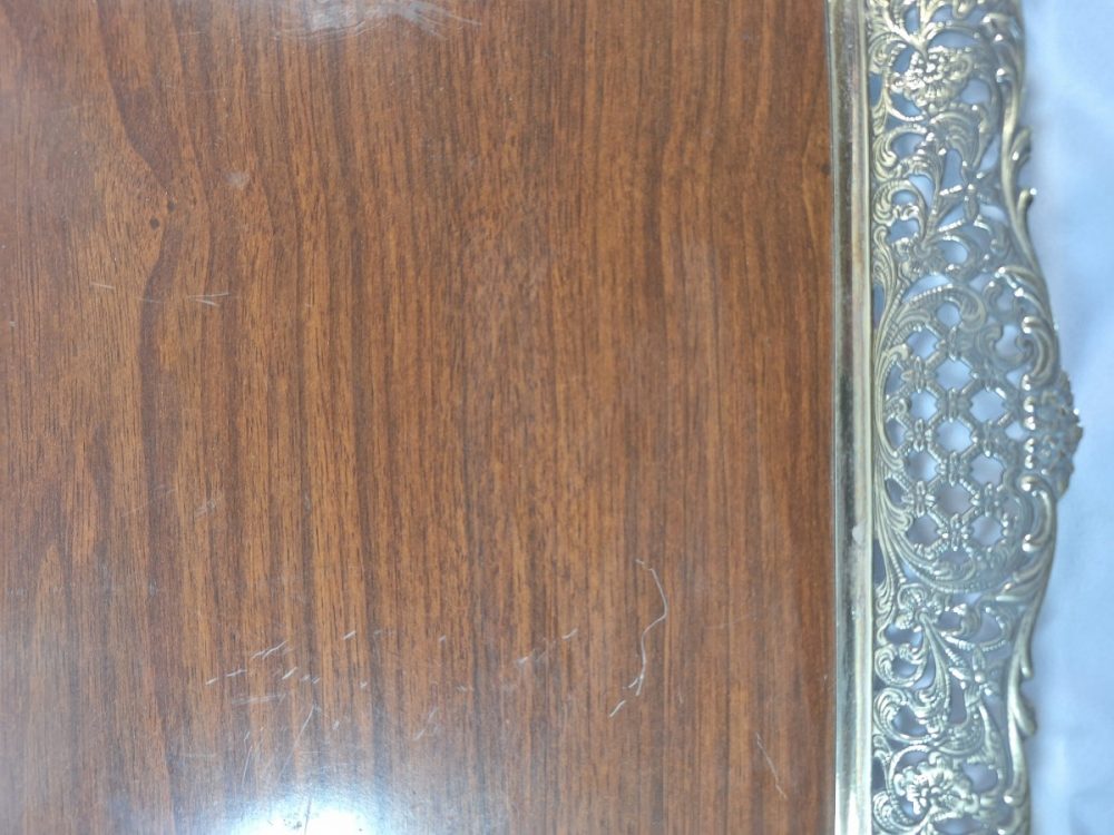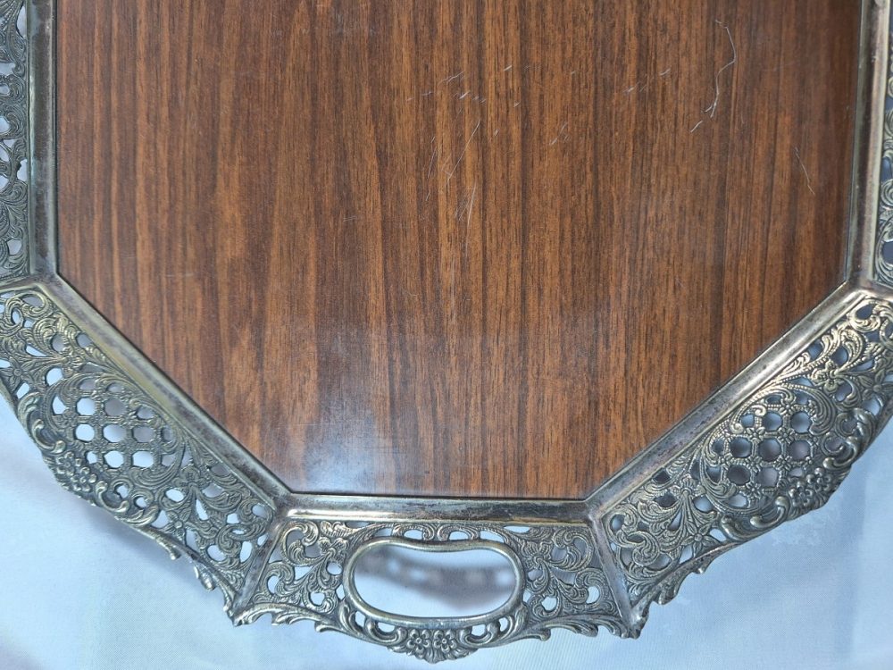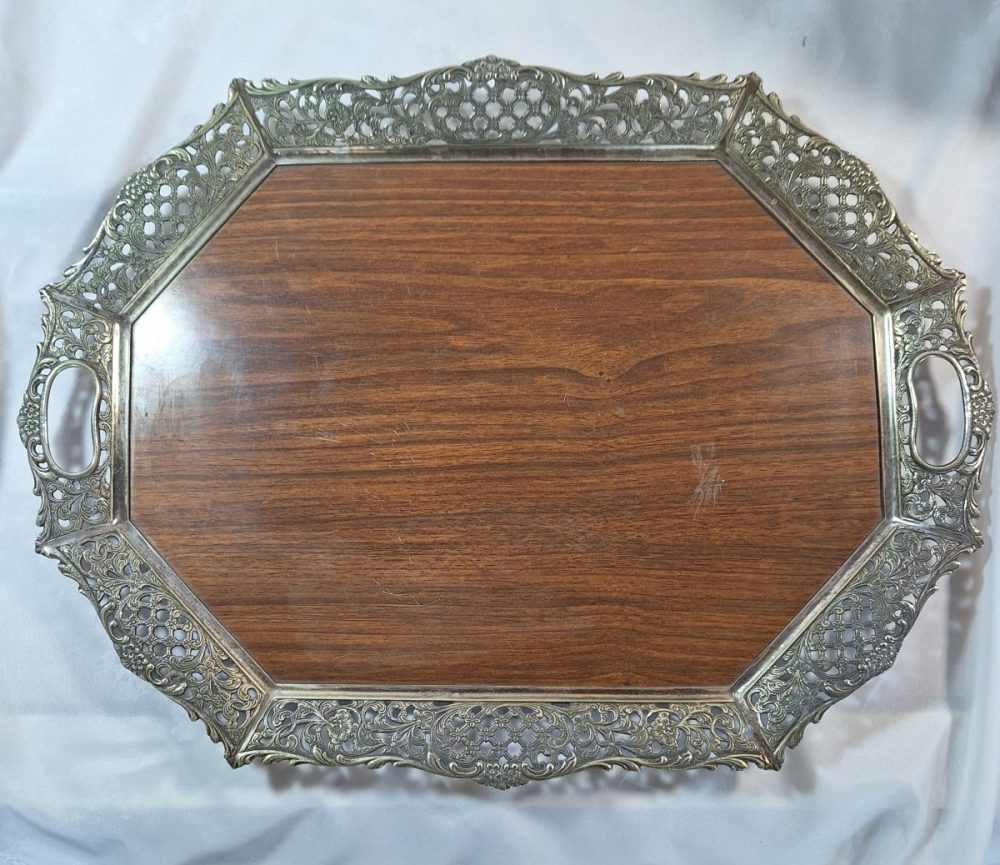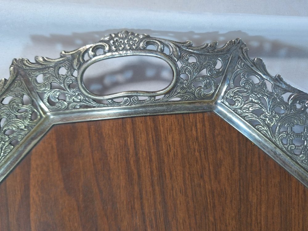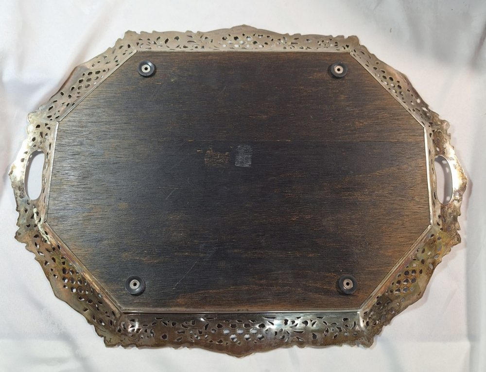 Categorieën: Bestek, Curiosa, Serviesonderdelen, Vintage, Goud zilver en verzilverd Verzilverd dienblad€37.50 Fraai dienblad met bewerkte zilveren lijst. Lengte 45 cm. In gebruikte maar goede staat ds4 1 op voorraad In winkelmand Related Products Societe ceramique – bord decor Landschap* €4.00 Sale! Kannetje met ijsglas design €22.00 €17.50 Vintage jaren 50 Sirram mint groene toilet garnituren kistje* €25.00 2 brocante bordjes met romantisch tafereel €10.00